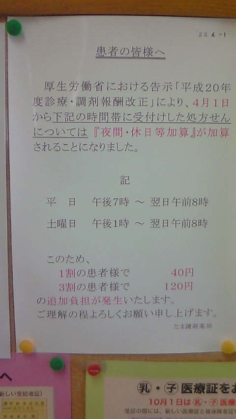 さらに深夜に薬を貰いに行くと、深夜料金が掛かるらしい