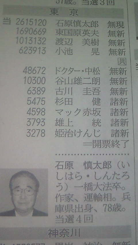 有権者の1/4が選んだ石原さん
