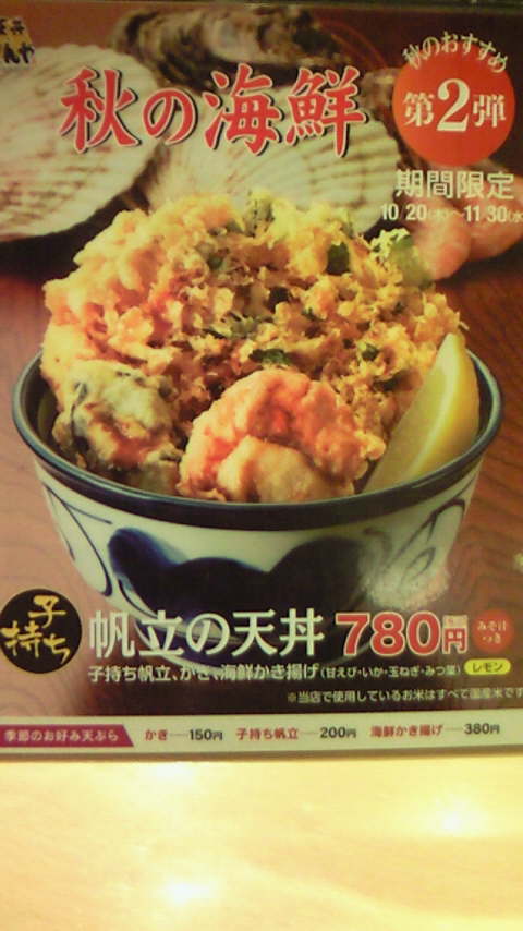 てんやで『帆立の天丼』