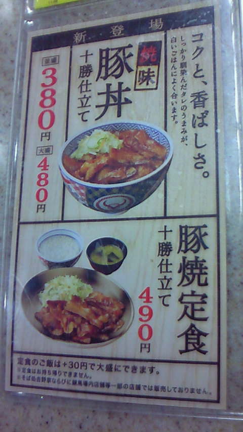 吉野家で豚丼十勝仕立て(380円)